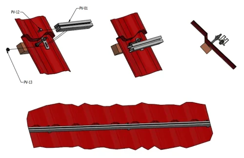 Montažinis profilis tinka fotovoltinių panelių tvirtinimui naudojant vidurinius ir galinius laiklius. Laikikliai tvirtinami prie viršutinio profilio bėgelio kanalo. Apatinis bėgelio kanalas leidžia montuoti profilį ant adapterių, stogo kabių arba trikampių.