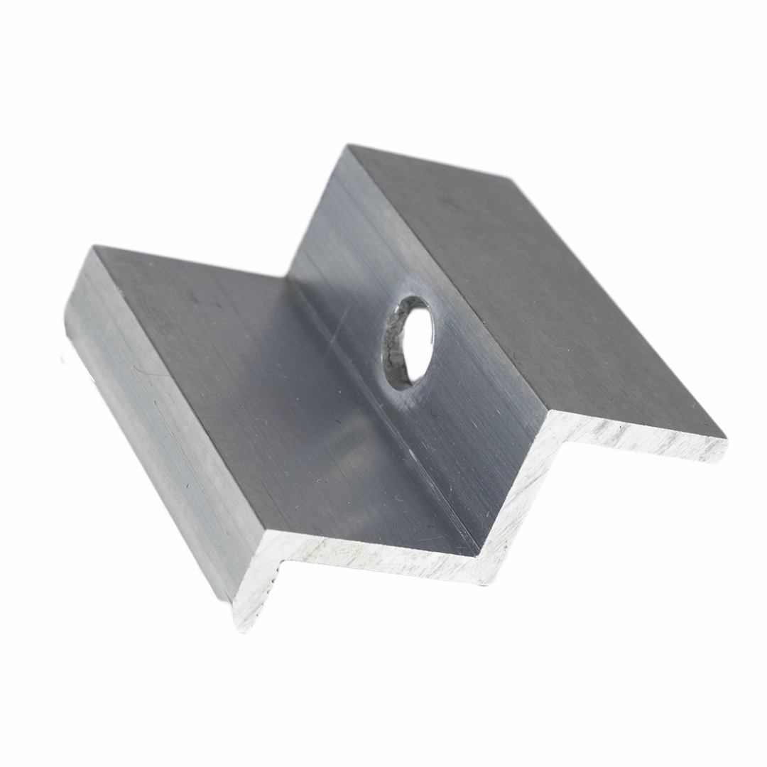 Šoninė spaustuko apkaba iš aliuminio 6060, 40mm, anga M8, skirta fotovoltiniams moduliams.
