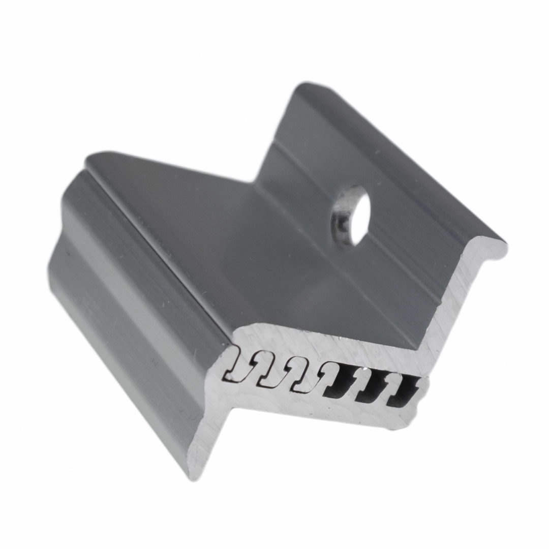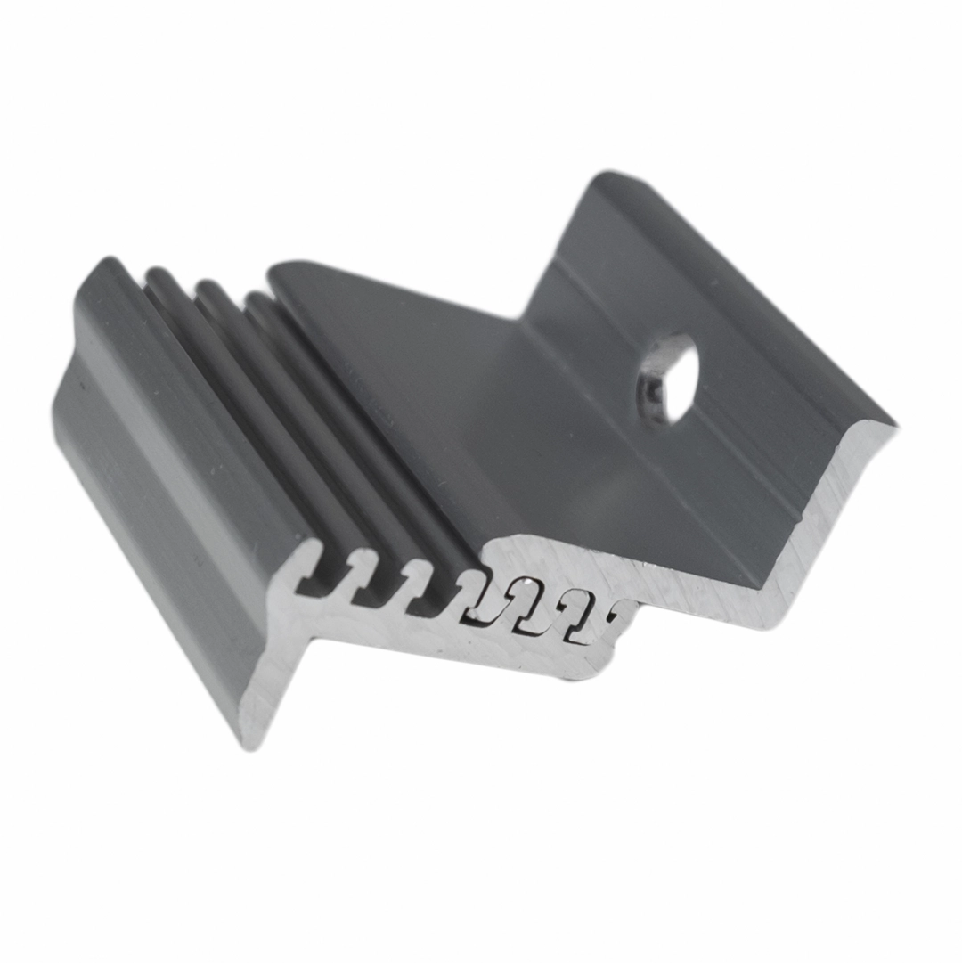 Šoninis spaudimo gnybtas iš aliuminio 6060, reguliuojamas dėl slankiojančių griovelių, skirtas 30-50 mm fotovoltiniams moduliams montuoti.