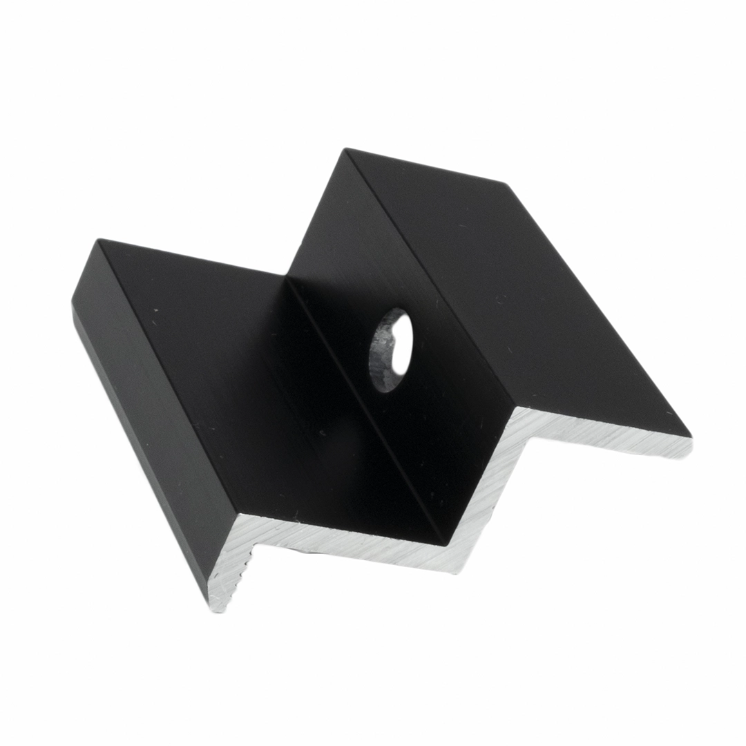 Spaudimo apkaba iš aliuminio 6060 anoduota, 40mm, skylė M8, saulės modulių tvirtinimui.