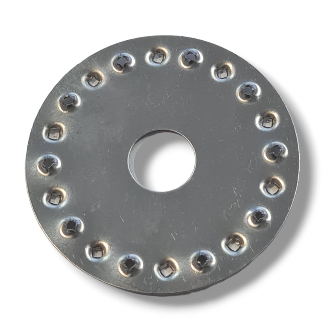 Įžeminimo aikštelė III variantas, apskritas kietas, pagaminta iš nerūdijančiojo plieno A2 1.4301, Ø35 mm, skirta fotovoltinėms sistemoms.