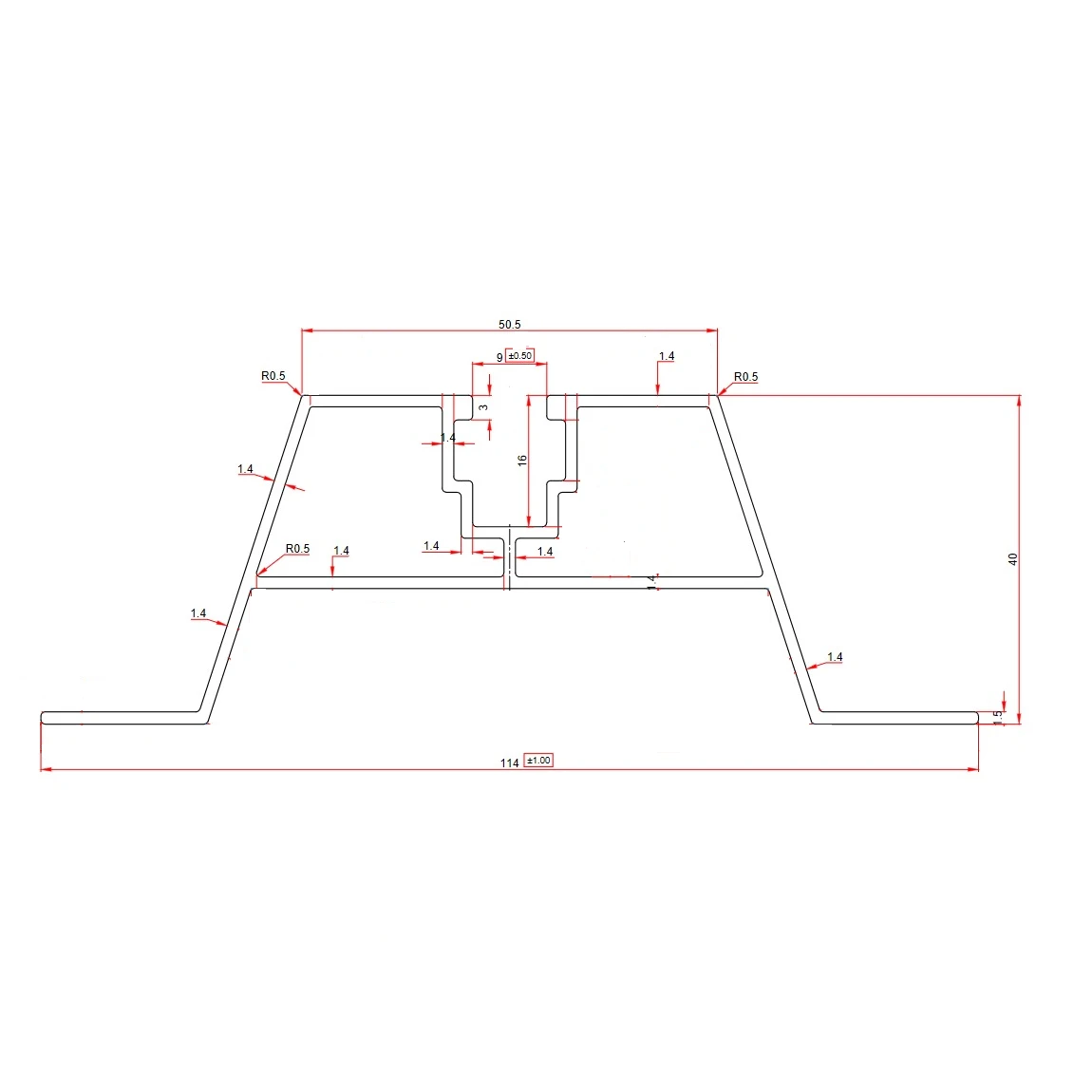 Aliuminio trapecinis profilis, arba vadinamasis trapecinis tiltelis, leidžia tiesiogiai tvirtinti plokštes prie trapecinio metalo lakštų. Jis tinka fotovoltinėms plokštėms tvirtinti centrinėmis ir galinėmis apkabomis. Gnybtai tvirtinami prie viršutinio montavimo bėgio kanalo šešiakampiais varžtais ir kvadratinėmis veržlėmis. 40 mm aukščio bėgelis užtikrina laisvą oro srautą po plokšte, todėl plokštė natūraliai aušinama ir atskiriama nuo šildomo stogo paviršiaus.